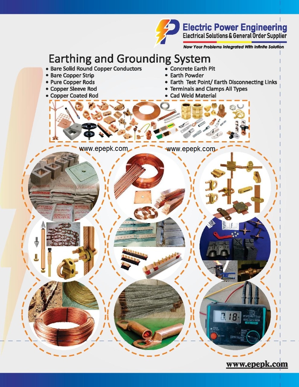 EPEPK supplies certified earthing materials , Bentonite Powder, Lightning Protection Materials ,Solar Structures designed for safe, durable, and compliant grounding installations nationwide.